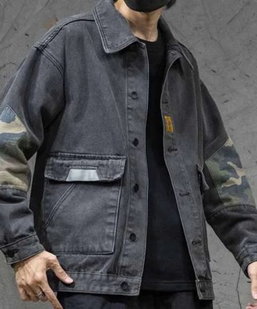 Men Fashion Casual Large Pocket Loose Camouflage Long Sleeve Lapel Denim Jacket