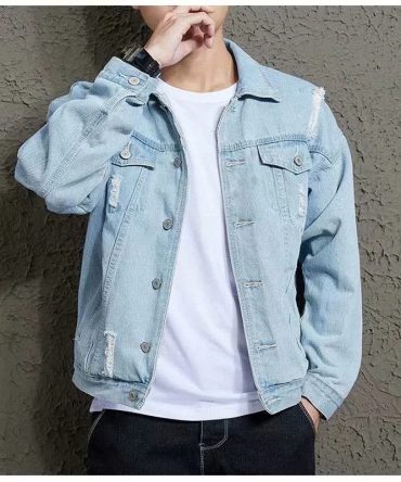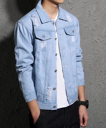 Men’S Casual Fashion Ripped Denim Jacket Outerwear