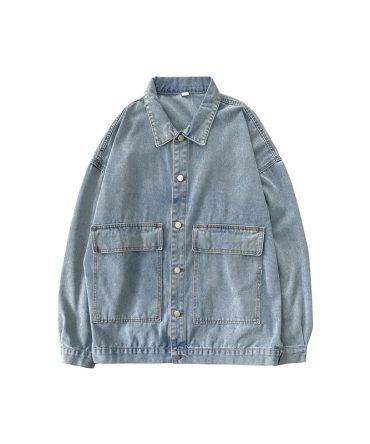 Men Casual Retro Lapel Long Sleeve Multi Pocket Single Breasted Loose Denim Jacket