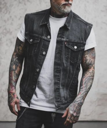 Men Casual Sleeveless Lapel Single Breasted Skull Knight Denim Vest