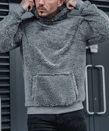 Men Autumn And Winter Hooded Solid Color Fleece Hoodie