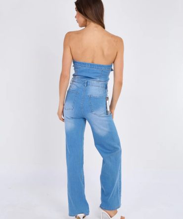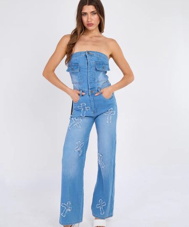 Cross Patch Bandeau Denim Jumpsuit