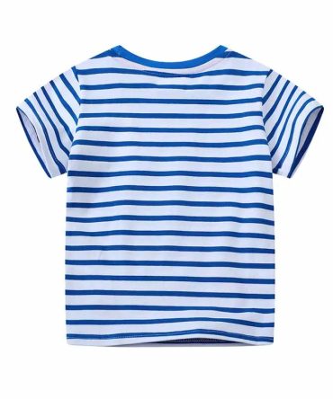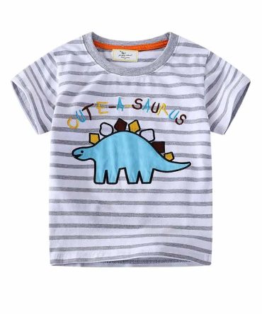 Boys Casual Cute Dinosaur Stripe Short Sleeve T-Shirt