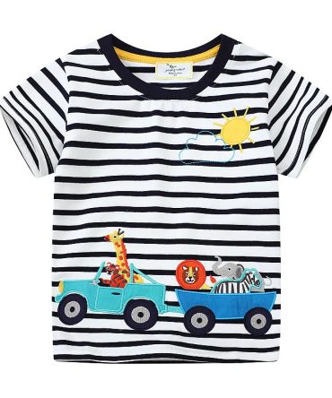 Boys Casual Cute Car Stripe Short Sleeve T-Shirt