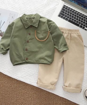 Boy’S Fashion Casual Autumn Lapel Long-Sleeve Blouse Loose Pants