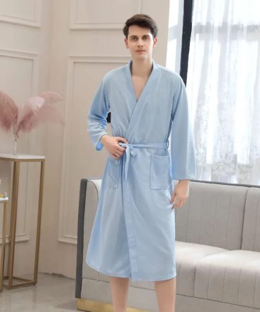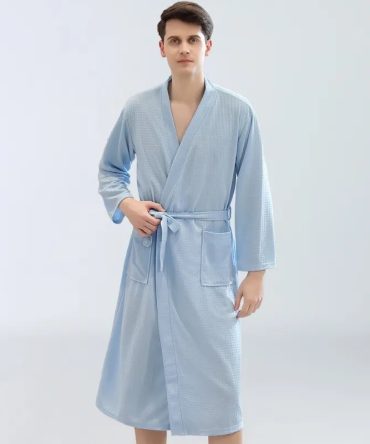 Couples Fashion Casual Home Solid Color Waffle V Neck Long Sleeve Robes Sleepwear