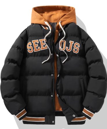 Embroidered Fake Two-Piece Hooded Cotton-Padded Men Thickened Winter Quilted Down Coat