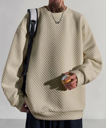 Winter Vintage Rhomboid Pullover Crewneck Basic Men Casual Sweatshirt