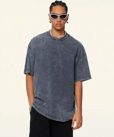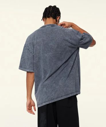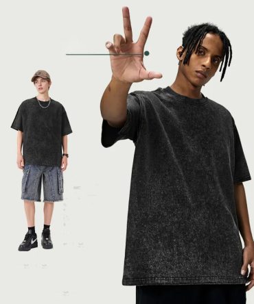 Men Fahsion Casual Solid Color Washed Old Round Neck Short Sleeve Loose T-Shirt