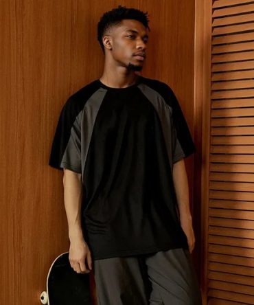 Men Fashion Casual Color Block Ice Silk Short-Sleeve Quick-Drying T-Shirt