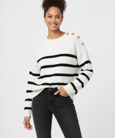 Striped Knitted Jumper With Button Detail