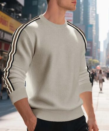 Men Spring Autumn Casual Stripe Round Neck Long Sleeve Sweatshirts